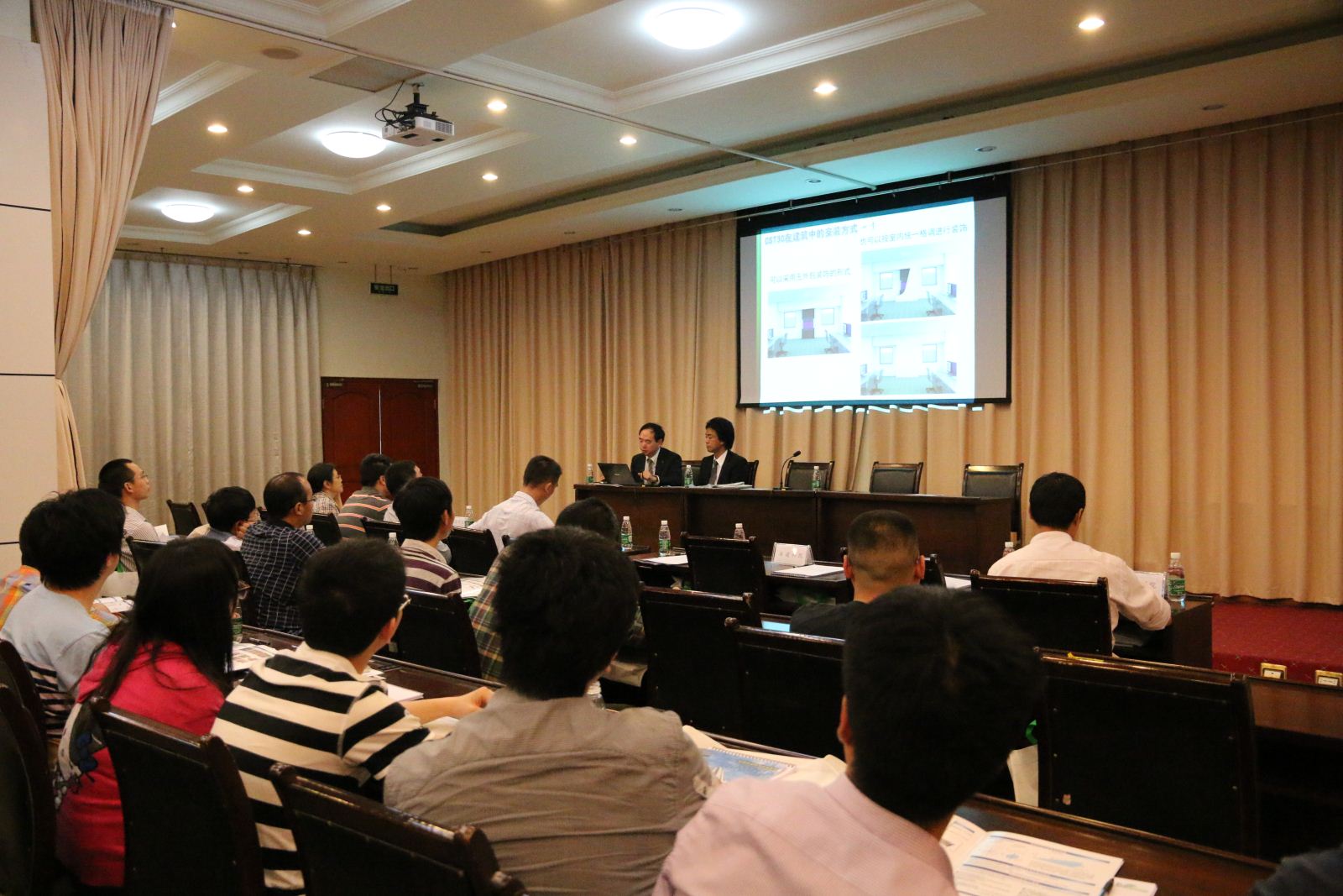 王德華院長對來我院指導(dǎo)工作的領(lǐng)導(dǎo)及專家表示熱烈的歡迎和誠摯的感謝,表示在紀(jì)念汶川大地震六周年之際舉辦此次消能減震技術(shù)及應(yīng)用交流會(huì)具有十分重要的意義。省住建廳曾處長指出本次交流旨在在消能減震產(chǎn)品的生產(chǎn)廠家和技術(shù)專家之間形成互動(dòng),為使用消能減震器提供相關(guān)技術(shù)支持,爭取用更好的技術(shù)開發(fā)出更好的產(chǎn)品,能為我省的抗震工作做出貢獻(xiàn)。隨后,空思太客(上海)公司總工程師王忠明博士在介紹CST30消能減震器的基礎(chǔ)上對該產(chǎn)品在國內(nèi)外工程中的應(yīng)用做了介紹,空思太客公司減震事業(yè)部科長鈴木公平(日本)講解了減震設(shè)計(jì)中的相關(guān)計(jì)算方法。在后續(xù)的互動(dòng)交流環(huán)節(jié)中,與會(huì)人員就CST30消能減震器的防火性能、施工安裝與檢驗(yàn)、減震設(shè)計(jì)計(jì)算等相關(guān)問題展開了充分討論,現(xiàn)場氣氛十分熱烈。