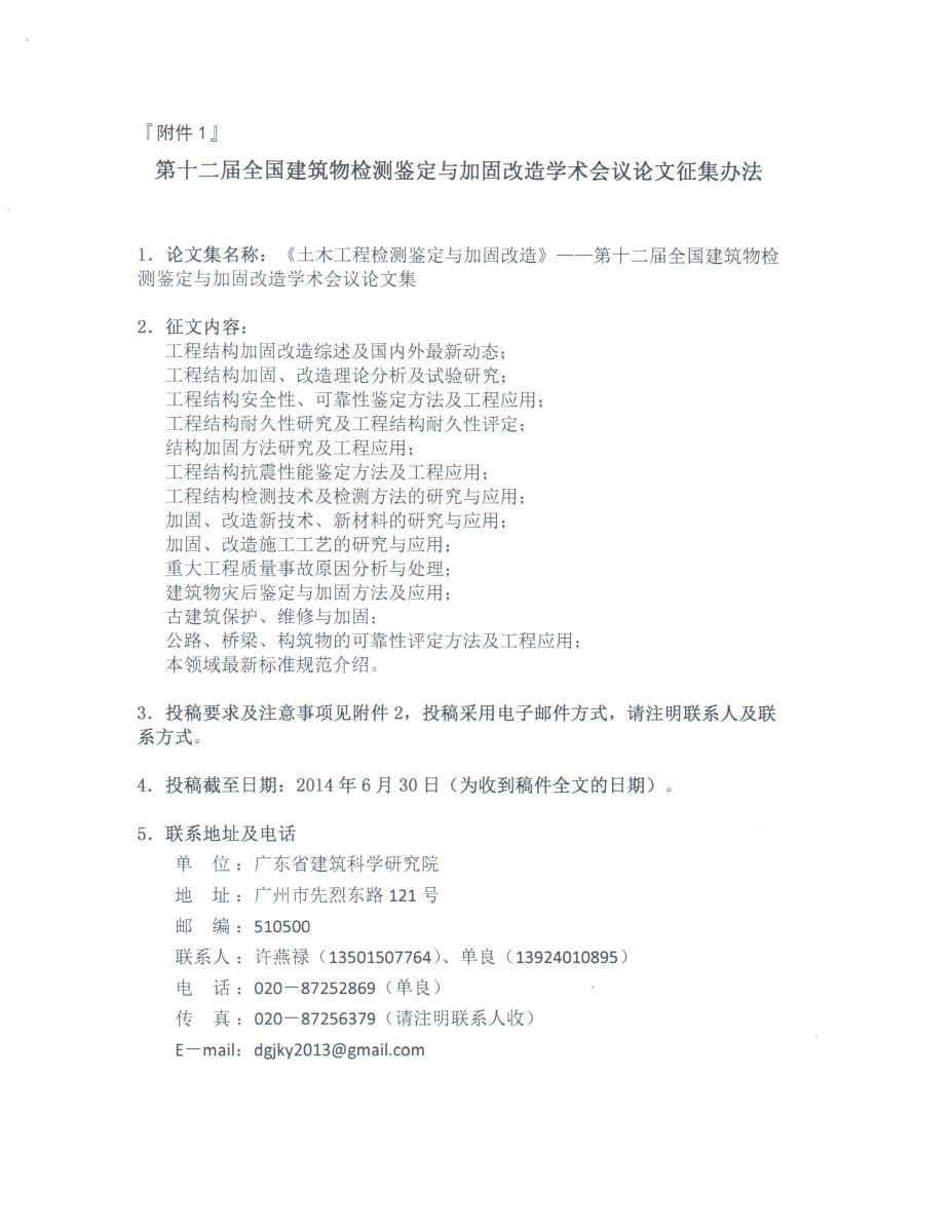 全國(guó)建筑物檢測(cè)鑒定與加固改造第十二屆學(xué)術(shù)交流會(huì)第01號(hào)通知