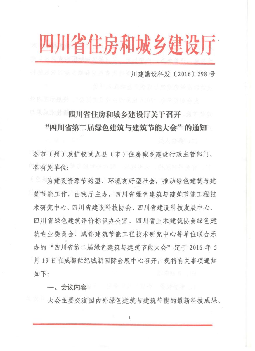 四川省住房和城鄉(xiāng)建設(shè)廳關(guān)于召開(kāi)“四川省第二屆綠色建筑與建筑節(jié)能大會(huì)”的通知